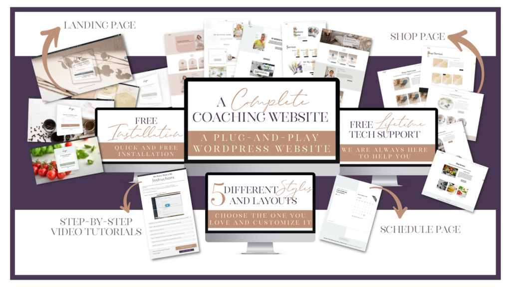 This is not a template or a few page layouts – it’s a complete self-hosted WordPress website that already has everything you need in a website for your coaching business (estimated value: $1000)